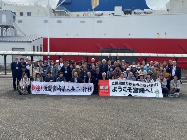 往復ともに「宮崎カーフェリー」を利用し、宮崎港へ到着した際には、多くの大阪事務所OBや宮崎カーフェリーの皆様に出迎えていただき、懐かしい顔との再会に喜びの笑顔があふれる感動的なスタートとなりました。